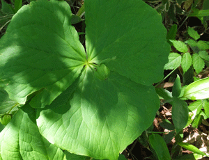 | エンレイソウ:シュロソウ科 実だけでは、白花か紫花かは分からない 大きな実がなっていた (右) |