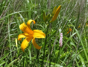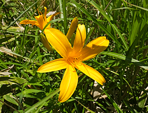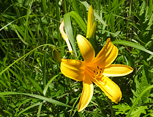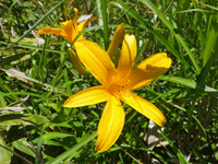 | ニッコウキスゲ:ユリ科 ちょうど見頃なのかな? それにしても、大群落を期待していたが、 パラパラ咲きだった・・・ |