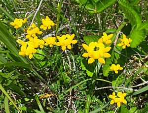 | セイヨウミヤコグサ?:マメ科 新しいトイレの傍で、大型のカメラを持った男性が 何か写していた 「面白いものがありましたか?」と尋ねて 彼が指さした方へ行って見つけた 鮮やかな蛍光色だった |