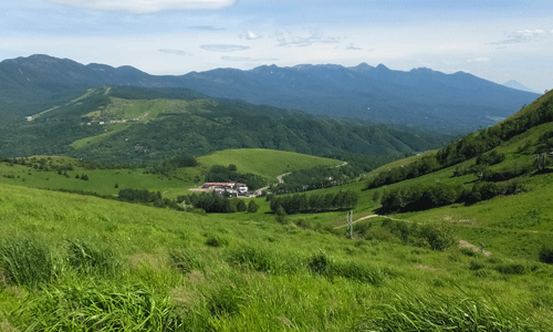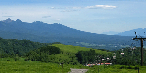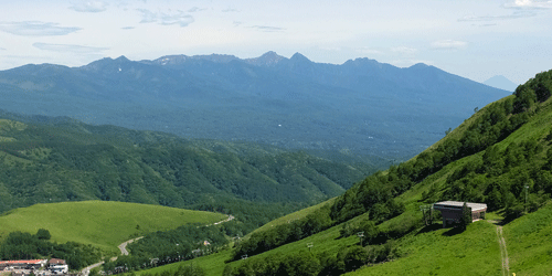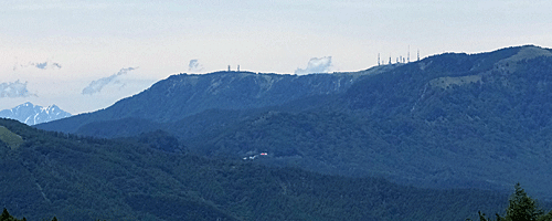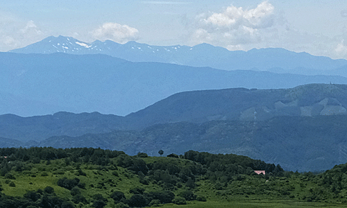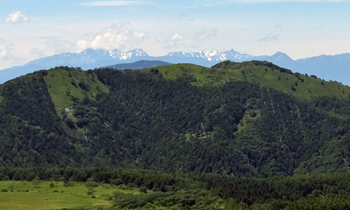 左手奥に、丸いドーム↓のある車山が遠望 ↑![]() 遠く離れた麓からでも、ぽっつりと丸い物が見えれば そこが、車山山頂 |