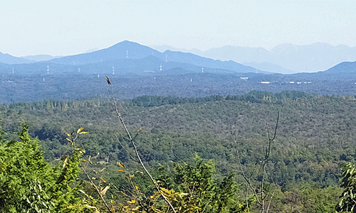 | 展望地から-3 その左に、うっすらと御嶽 今日は晴れているのに遠くがくっきり見えない |