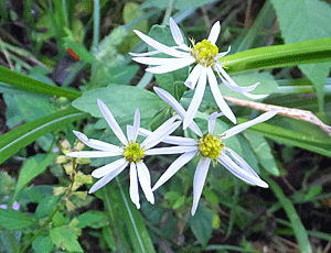 ヨメナ:キク科 花びらが細いが 葉っぱは滑らかだったのでヨメナにした |