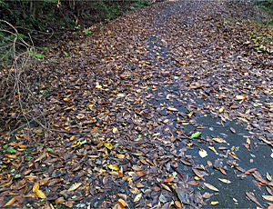 昨夜の雨と、たくさんの落ち葉で うっかりするとつるっと滑るので 用心しながら歩いた |