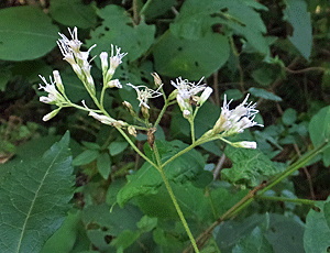 | ヒヨドリバナ:キク科 これは残り花 葉が4つ葉ではないので、ヒヨドリバナ |