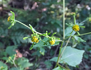 | メナモミ:キク科 じっくり見ると面白い作り ねばねば力が強いので、「ひっつき虫」と呼ばれている |