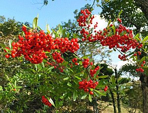 ピラカンサかな?:バラ科 園芸種には疎い 真っ赤な実がたわわになっていた |