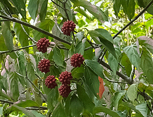↓ しかし、ヤマボウシもハナミズキも背が高い木なので 遠くから観察することになる ま、花びらの先端や色は見えるが、 決定的な実の形までは無理・・・ (*注:花びら=総苞片(そうほうへん)=萼が変化したもの) たまたま今回の場合は、 同じ木を、春と秋に観察でき、実の形まで撮っていたため、 ハナミズキと分かったが花を見ただけでは分からない これからは、花びらの形・実の形に気をつけなくっちゃ!と思った |