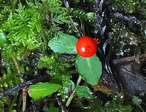 | 調べ中 この上を向いている真っ赤な実は何だろう?? |