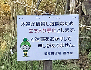 | 「湿地保全活動中」の札 「通行止」と書いてあるので、 この橋は作業用なんだ・・・と思った 花を探して歩き始めた2008年から 何度も通った「御嵩の森」 年中、何かしらの花に出会えるので、お気に入りの場所だった その頃は、この湿地も遊歩道ができていて歩けた ここでしか見られない花もあってお気に入りだった いつからだったか、木道が古くなって 通行禁止になってしまって お気に入りの花に出会えなくなってしまった・・・ いつか元のように湿地の中を歩ける・・・と思っていたが、 こんな工事には初めて出会った 何年かかるか分からないけれど楽しみ〜! |