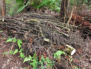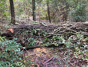| おやあ〜!木を切って山積みになっている場所が いくつもあった |