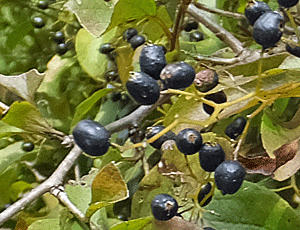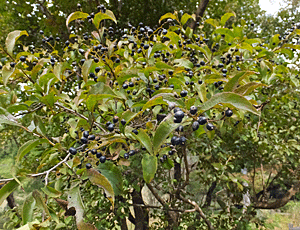 | クロミノニシゴリかな?:ハイノキ科 溜池の傍に、ハイノキの仲間の木があった サワフタギの白い花は 何度も見ているが、実の色は藍色 でもこれは黒い実なので「クロミノサワフタギ」かも? 別名「クロミノニシゴリ」だって さっきの名札のついていた木だろうか? でも、こんな黒い実はなっていなかったけれど・・・ |