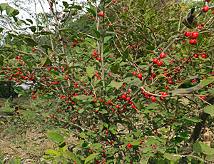 | ウメモドキかな?:モチノキ科 真っ赤な実がた〜くさ〜ん |