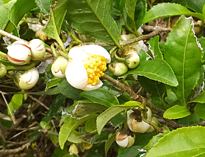 チャノキ:チャノキ科 花が咲いているのは、ちょっぴり 殆んどはつぼみだった |