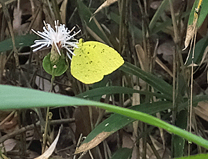 | コウヤボウキ:キク科 大きな茂みになっていたが、 やや花はくたびれていた 右 キチョウと一緒にパチリ |