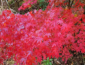 | 真っ赤なモミジ:ムクロジ科 他のモミジと種類が違うと思えるほどの真っ赤っか |