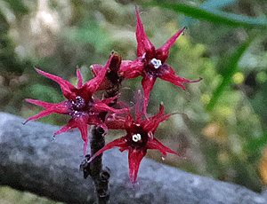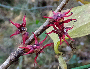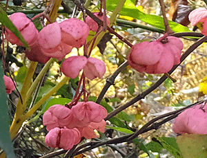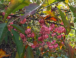 | マユミかな?:ニシキギ科 パかッと割れて、ぶら下がっていた |