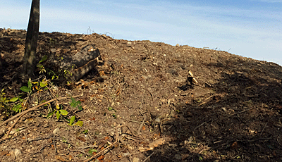 まずは以前のように直進 だが、すぐ山を削っている場所へ |