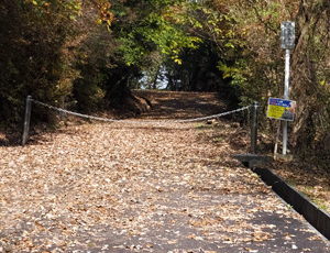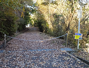 | チェーンのある出口へ ここを下りると、舗装された市道に出る |