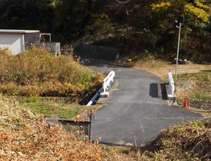 小川に架かる橋 それを渡って、右へ行かないで左折 マルバノキの花を見たくて |
