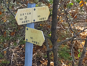 | 「笠原下石線No.1」と「笠原下石線No.2」の文字 (これが間違いだったと、後から分かって引き返した) |