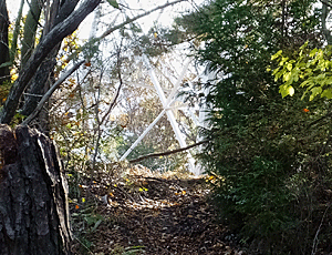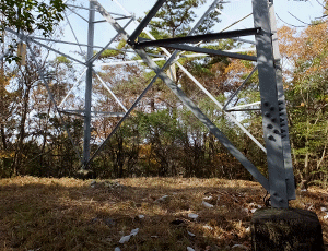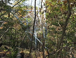 | 木の間に鉄塔が見えた 山道コースから少し入らないと 足元まで行けない |