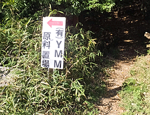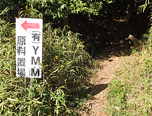 | 車道へ出た 車道を右へ進むと、 「(有)YMM 減量置き場」があるらしい =窯業原料メーカーの会社らしい |