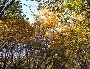 | ここからもきれいな黄葉や | 紅葉を見上げながら歩いて・・・ |