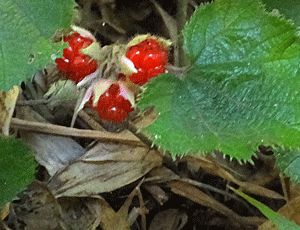 | フユイチゴ:バラ科 まだ出来立てのほやほやを見ながら… |
