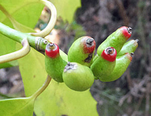 アオキ:アオキ科 こんないびつな実が一株だけだった |