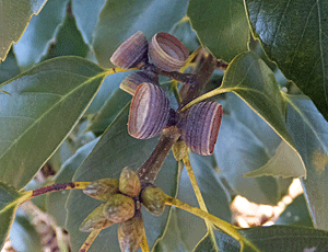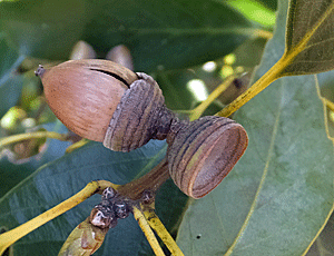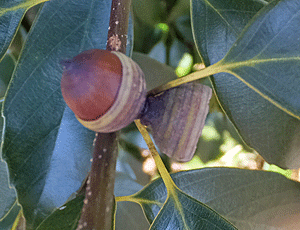 | アラカシかな?:ブナ科 ドングリ図鑑で調べると『帽子がしましま』 『帽子』の毛が目立たない *帽子とは、『殻斗 (かくと)のこと』 殆んどは、実が落ちて『帽子』だけになっていた |
