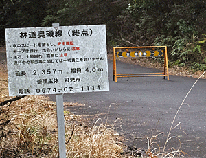 | 「林道奥磯線の終点」だって ここでやっと休憩 ここは右折して駐車場へ戻る |