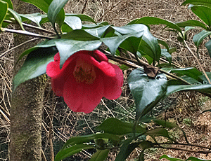 | ヤブツバキ:ツバキ科 やっと見つけた一株 ツバキの木はあっても花は無し |