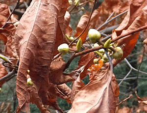 シロモジ:クスノキ科 枯れた葉っぱがたくさんついている間に つぼみがちらほら |