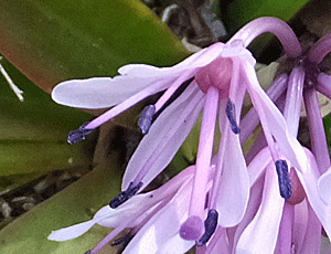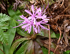 | ショウジョウバカマ:メランチウム科 @へら状の花びら 6枚 A雄しべ6個 先端に黒っぽい葯が付いている 下右 白い花粉が出始めている葯もある B雌しべ1個 にゅっと突き出ている C花の中央にある丸くて赤っぽいものが子房 ここに種ができる ・・・・・・ @ABCを合わせて1つの花 そんな花が茎のてっぺんに3〜10個付く |