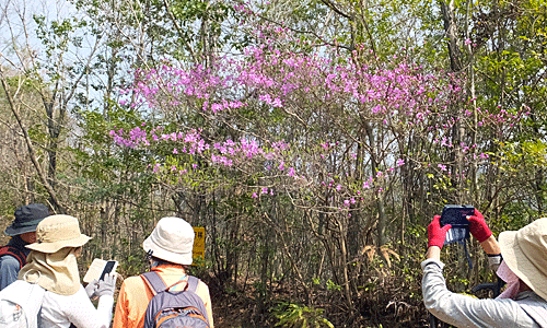 | コバノミツバツツジ:ツツジ科 こんな満開のツツジはまだまだ 殆んどは、「つぼみ固し」か 「つぼみ膨らむ」・・・といった状態 |