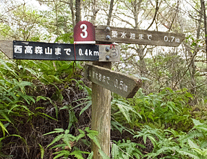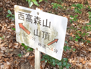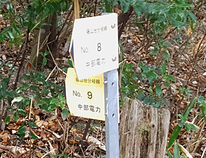 | さあ、いったん下って築水の森へ出発〜 下りはくねくねと下って、 林道に出た所がB番標識 |