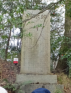 堰堤を通り過ぎた所にある「築水碑」 ここから川まで下りる |