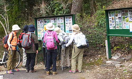 | いったん「開けて〜閉めて〜」の イノシシ柵から出て舗装路へ 花や虫、水の中の生き物などを 紹介してあるきれいで立派な看板があった またすぐ「開けて〜閉めて〜」の柵を通って 山道に入り、登った所が六方池 →キノコ広場→展望台→キノコ広場からショートカット →シデコブシ林→林道→駐車場と歩き 下の駐車場で解散 |