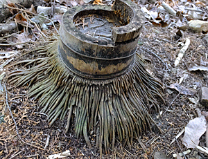 太い竹の切り株から 根のような固い物が 袴のようにぐるっと出ていた 調べてみると、やはりこれは「根」だって 『地表からおよそ30cmのところにある』・・・と 上部を切られても、何年も経っても、 まだこんなに元気な根! |