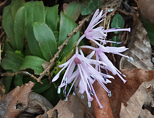 | 県道205号線を渡って、 掛川小学校へ行く通学路を進む ここは、水路沿いの道なので、 いつもショウジョウバカマや ↓ ↑スズカカンアオイに会える道 予想通り咲いていた〜 |