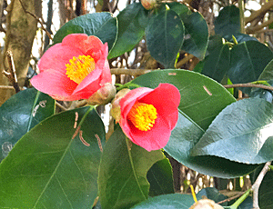 | いったんは県道205号を目指したが、 車が往来する道は避けようと思い 田畑の中の細い道へ 梅林やヤブツバキに出会えてよかった〜 |