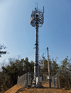 | いったん車道に出て205号線の歩道を歩いて 掛川小学校分岐へ 掛川小学校正門前を通り、 通学路を登った所に電波塔 14:14 |