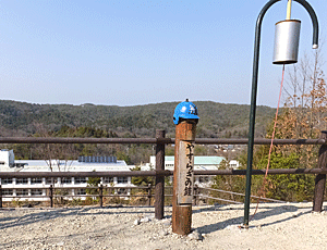 | 市之倉小学校の裏手にある 見晴台には、 新しく「安らぎの鐘」が設置されていた |