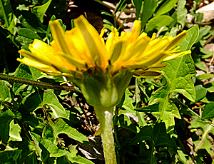 | ニホンタンポポ:キク科 右 総苞片(そうほうへん))をのぞきこんだら くるっと下に反り返っていなかった |