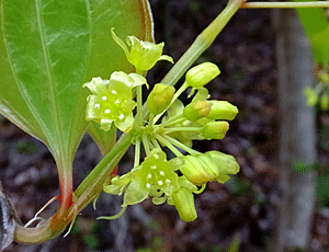 | サルトリイバラ:サルトリイバラ科 雌雄異株 これは雄花・雄株 |