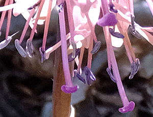 | アセビ:ツツジ科-2 『雄しべは10本』 (たくさんの花を調べていると、 どの花も・・・という分けではない)ことが分かる 『短いのが、5本・長いのが5本』 (これも、必ず・・・という分けではない) |