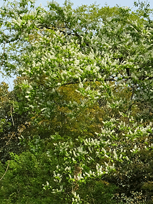 | ウワミズザクラ:バラ科 ん?なんか良〜い匂い・・・と思って、あたりを見回すと このウワミズザクラの大木があった 満開状態 |