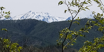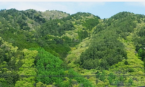 | 多治見、6:55発の中津川行きに乗車 ここ↑は、この前(4/23)歩いた木曽福島の山 多治見のあたりは、新緑は終わってしまっていたけれど、 ここらはまだいろんな緑があった |