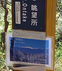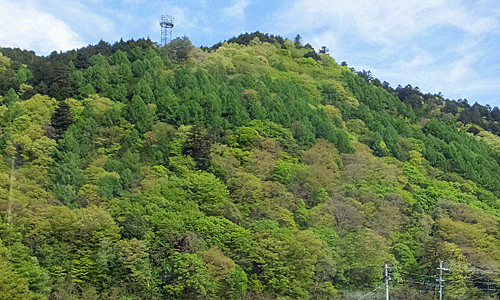 | 御岳眺望所 雲があって、すっきりとは見えなかった 木々も大きくなり、葉っぱも繁ってきたし・・・ |