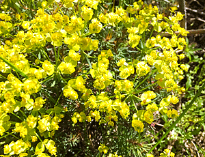 | この黄色い花、何だろう?藪原では初めて見た 花の形を見ると、トウダイグサ科 |